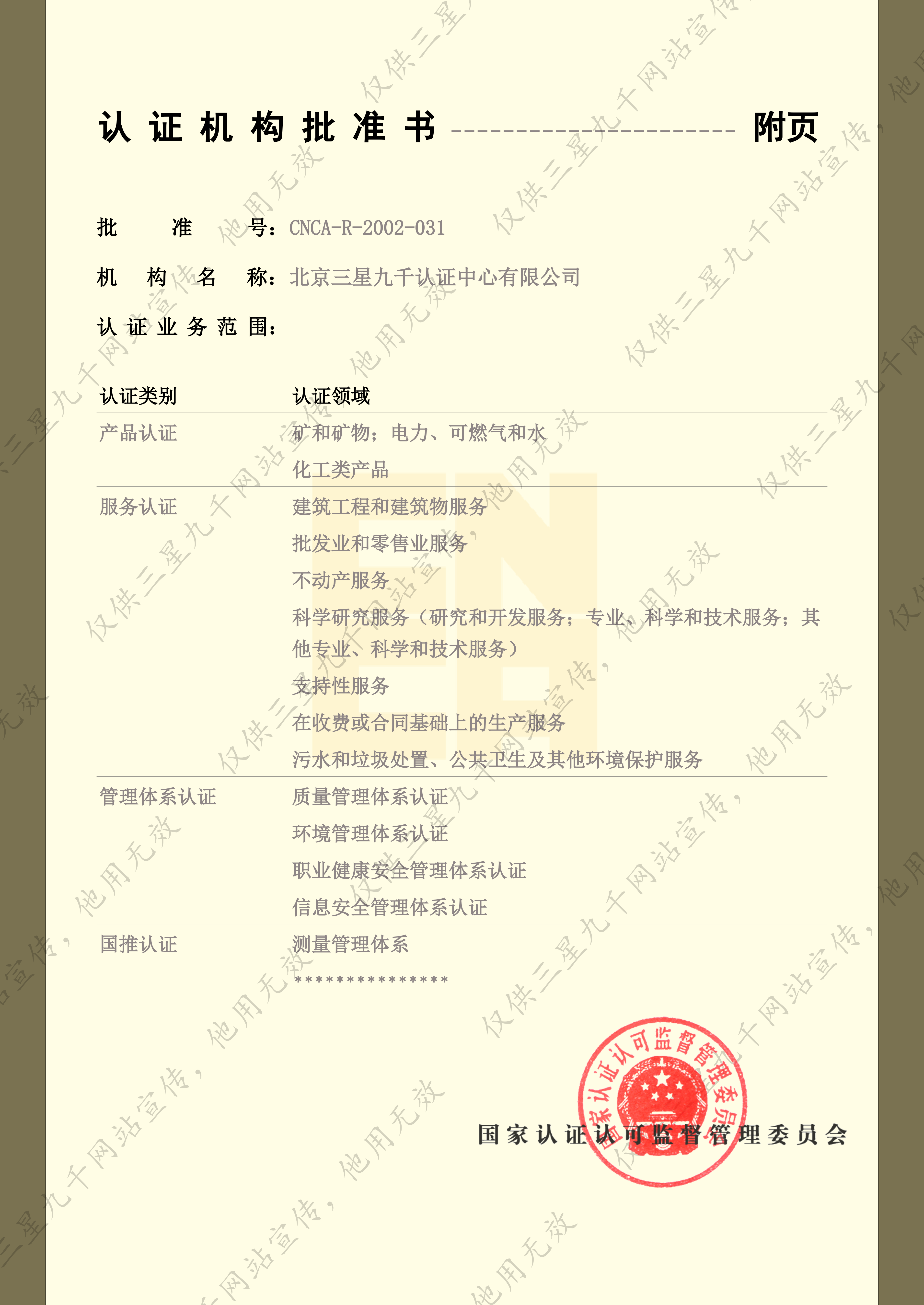 认证机构批准书附件-2