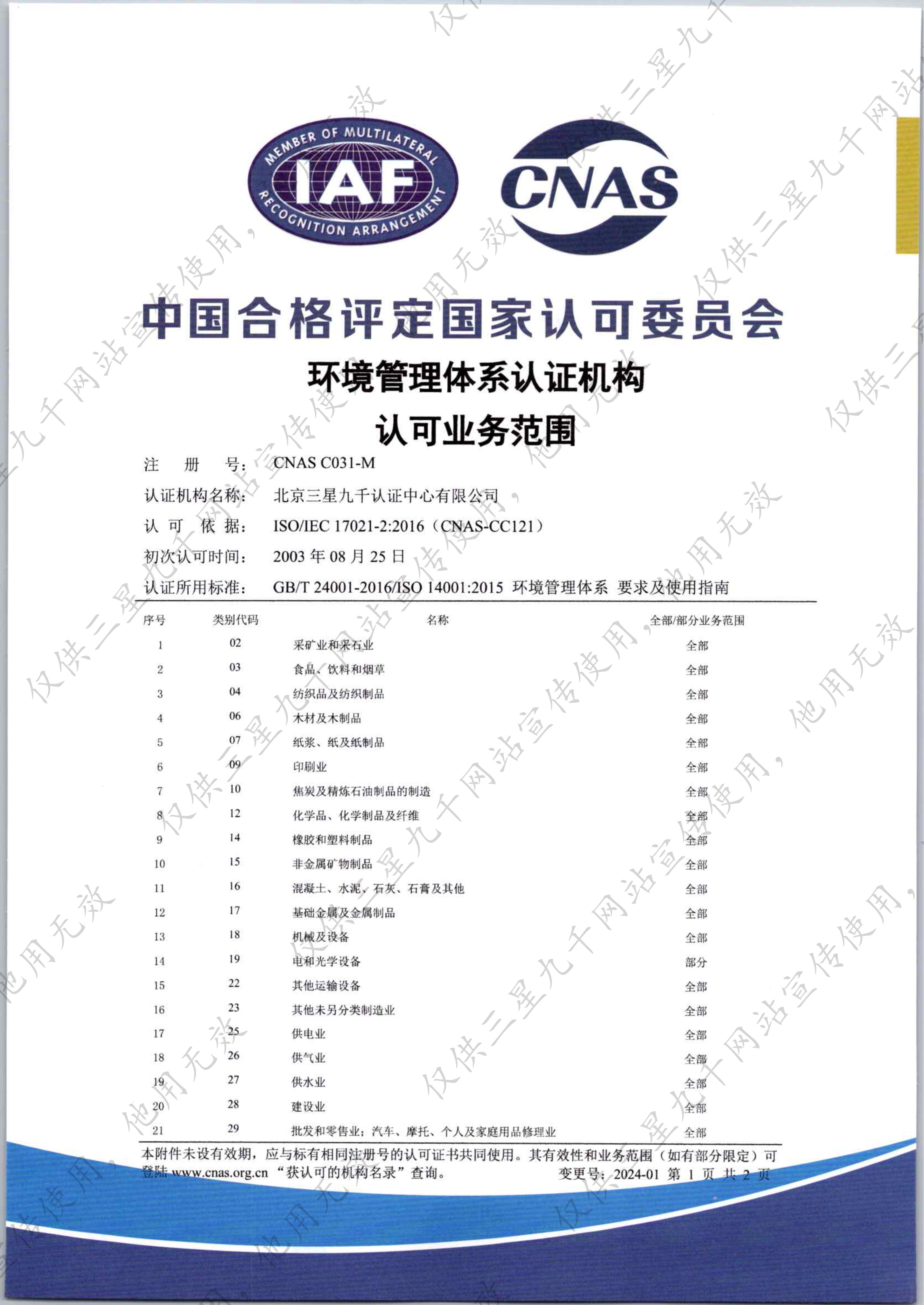 环境管理体系认证机构认可业务范围证书-2