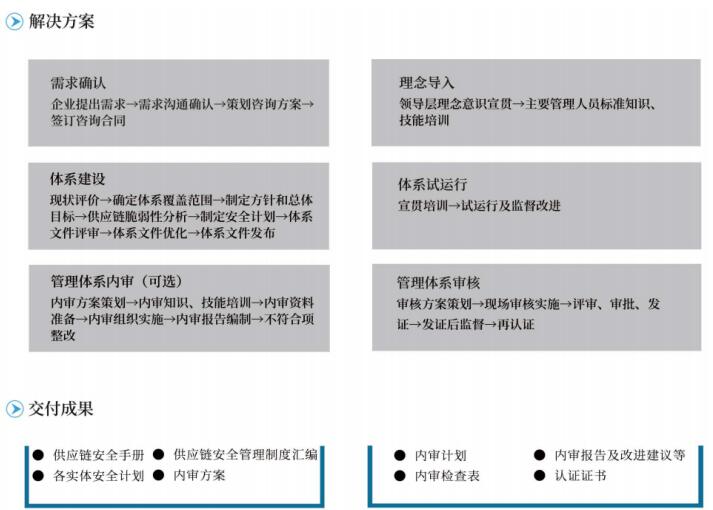 依据ISO28000标准建立安全的供应链管理模式,切实提高在制造、运输、仓储、配送、流通加工等过程的顺畅性和标准化程度,以降低过程环节中的各类风险,以确保业务连续性;确保相关方及时提供准确、完整和保密的物流信息,有效提高供应链计划与执行的匹配度,实现最优安全库存,提高组织的商业能力和信誉度;助力企业降低运营资本,实现以最低的服务成本满足客户和相关方的要求,提升组织的核心竞争力。