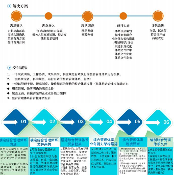 三星九千提供管理体系建设、整合技术服务,可以帮助企业解决因建立和独立运行多个管理体系而需投入相当大的人力、财力和时间等资源问题;系统解决企业内部因多体系并存带来的交叉重复、效率低下等突出问题;实现让“管理制度更加成熟、管理行为更加高效、管理要求更加科学、风险管控更加到位”的经营管理目标,有效发挥管理体系整体有效性,提高企业管理水平和管理效率。