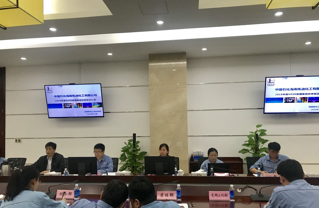 2018年11月23日,中国石化海南炼化有限公司(以下简称海南炼化)召开了HSSE管理体系建设项目内部审核末次会,会议由海南炼化管理者代表/副总经理杨文主持,海南炼化各部门负责人、各单元(中心)安全总监、内审组成员及北京三星九千认证中心技术服务组成员参加了会议。会议的召开,标志着海南炼化HSSE管理体系建设项目内部审核阶段工作圆满完成。