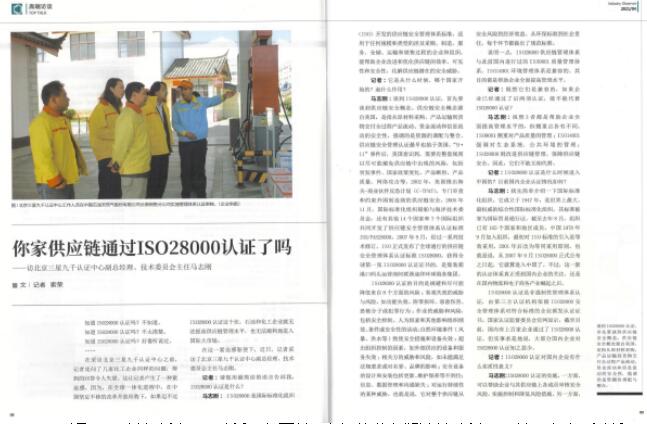 马总指出:近年来,在全球一体化的进程中,在中国坚定不移的改革开放的形势下,企业如果迈不过供应链管理系统化、结构化的坎儿,无法优化内部和外部流程,整合各类资源,提高供应链各环节协同的效率,就无法提高供应链管理水平,也无法顺利地进入国际大市场。ISO28000供应链安全管理体系认证过程,是企业对自身供应链的梳理和整合,不但有助于提升自身供应链管理水平,实现整体降低成本、提升效率、提高竞争力等目标,更有助于在国际市场中实现供应链上的各企业多赢。