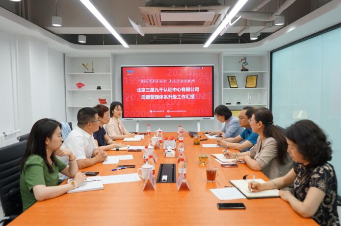 2023年6月2日,国家市场监督管理总局认证监管司二级巡视员葛红梅、认证监管司管理体系认证处处长刘永有及认研中心认证认可部有关人员一行到访北京三星九千认证中心有限公司(简称“三星九千”),对三星九千质量管理体系认证升级版工作开展情况进行专题调研。三星九千总经理马志刚、技术总监孙竹君及技术部负责人员参加座谈。