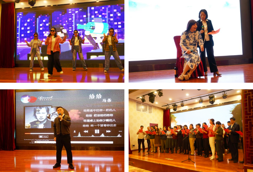 本次新春联欢活动共分为三个篇章。在“金蛇启运·共绘华章”篇章中,全体党员共同唱响《中国 中国 鲜红的太阳永不落》,以激昂的旋律和深情的歌词,歌颂伟大祖国繁荣昌盛;三位总监分别带领各自分管部门员工通过舞蹈《福气要来到》、创意演奏《拉德斯基进行曲》、合唱《我们去过很多地方》与大家一起回顾了过去一年跋山涉水的坚韧、收获硕果的喜悦,为大家送上满满的祝福。