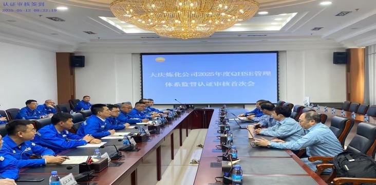2025年5月16日,中国石油天然气股份有限公司大庆炼化分公司(以下简称“大庆炼化”)组织召开了QHSE管理体系的监督审核末次会议。大庆炼化党委副书记、总经理宗义山,各部门负责人及北京三星九千认证中心有限公司(以下简称“三星九千”)的审核团队参加了会议。会议的召开标志着大庆炼化在质量、环境、职业健康安全管理体系方面的监督审核工作顺利完成。