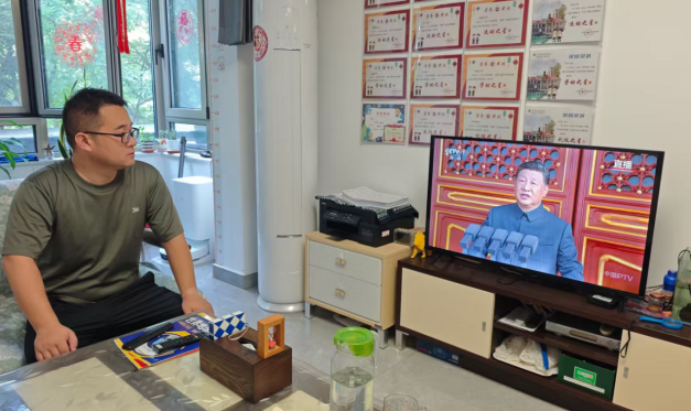 员工居家观看纪念中国人民抗日战争暨世界反法西斯战争胜利80周年大会直播活动